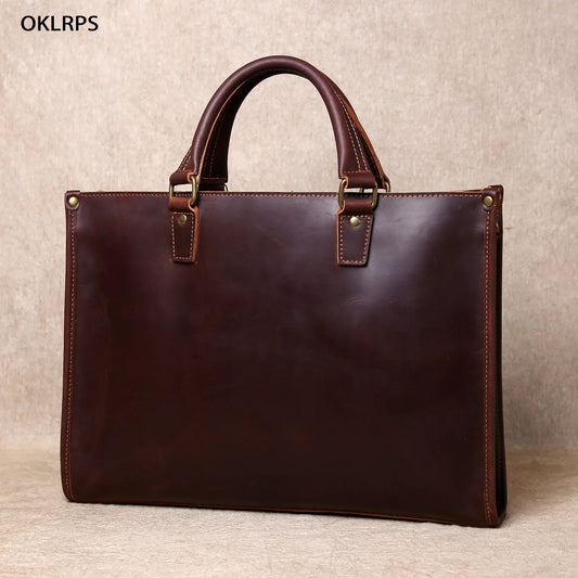 Luxury handcrafted vegetable-tanned leather briefcase for men, perfect for business and laptop use, with a vintage design and st