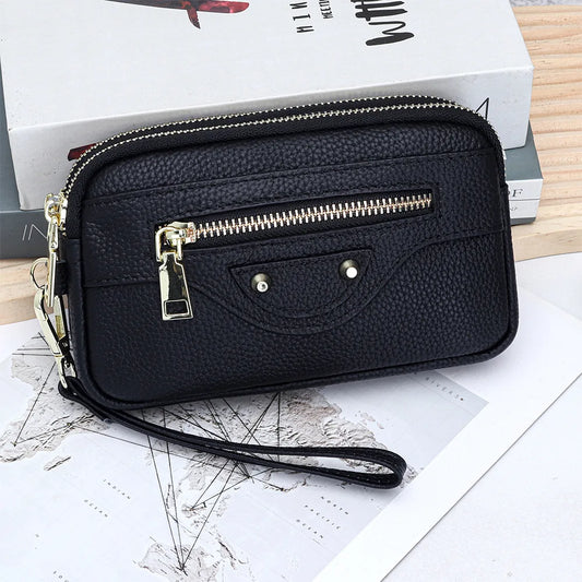 New 2025 Versatile Lady Wallet Women's Clutch Bag Brand Rivet Real Top Layer Cow Leather Zipper Coins Pocket KeyChain Big Purse