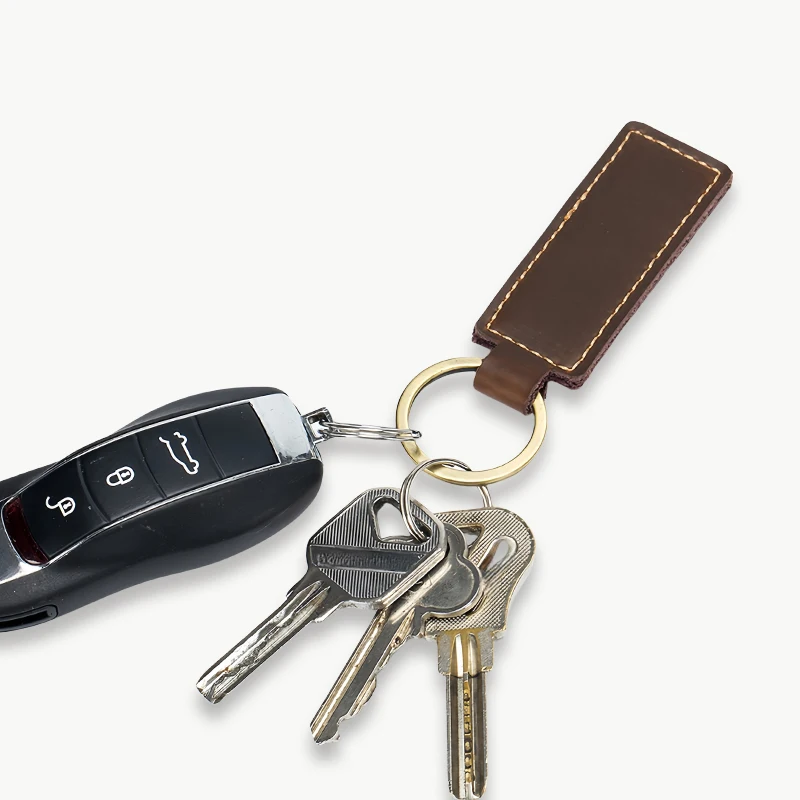Custom LOGO Genuine Leather Cowhide Keychain Laser Engrave TEXT NAME Personalized Key Chain Vintage Key Tag for Women Men Gift