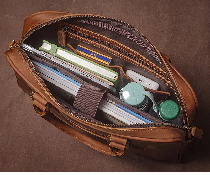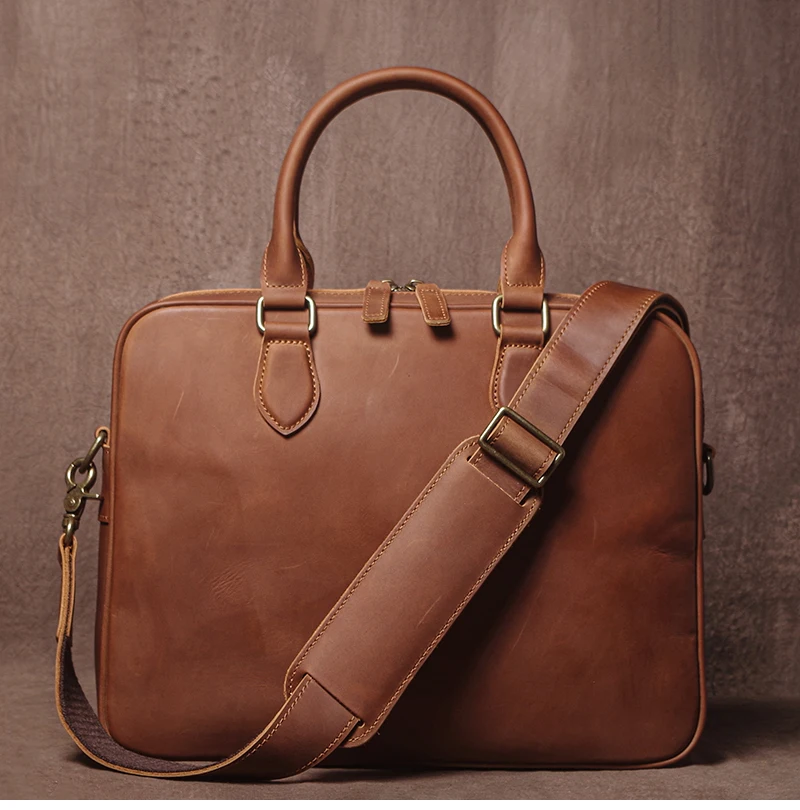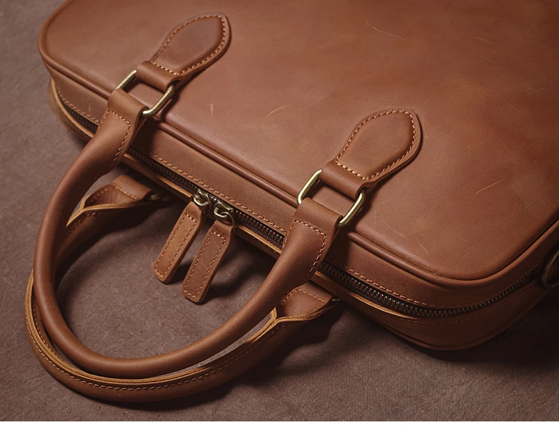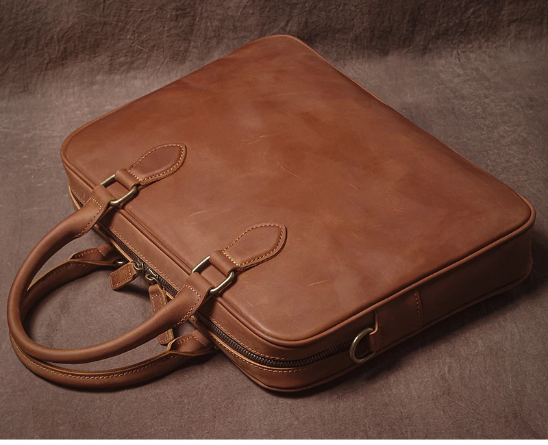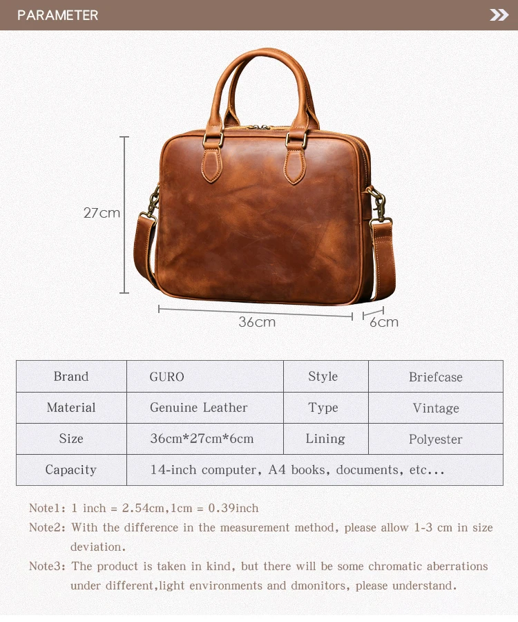 GURO Men Crazy Horse Cowhide Briefcase Luxury Genuine Leather Handbag Simple lightweight Shoulder Bag File Laptop Crossbody Bags