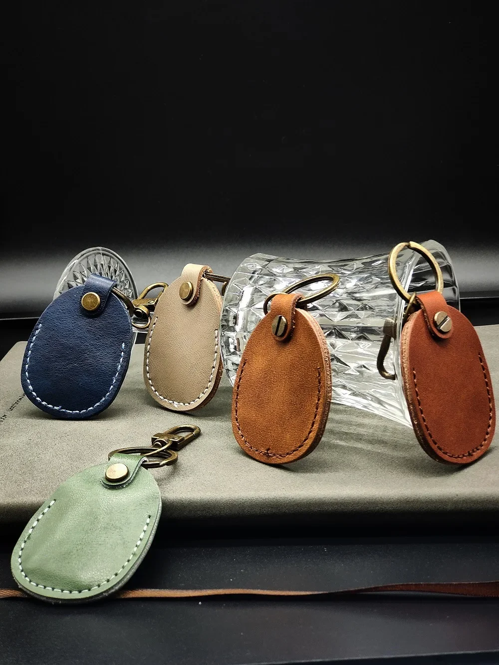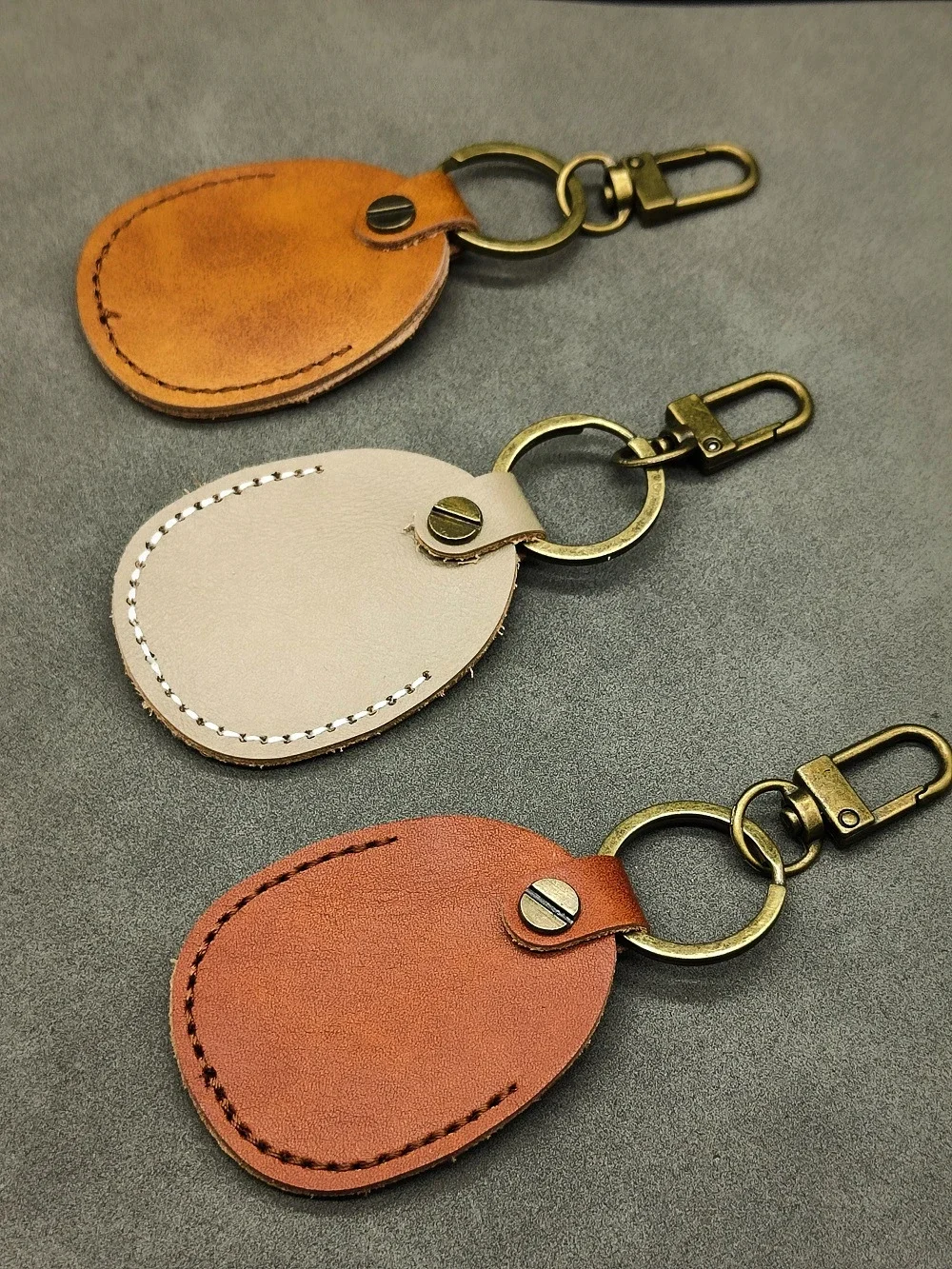 Personalize Vintage Dermis Key Chain Custom LOGO Genuine Cowhide Leather Keychain Case for Air Tag Door Card Laser Name Keyring