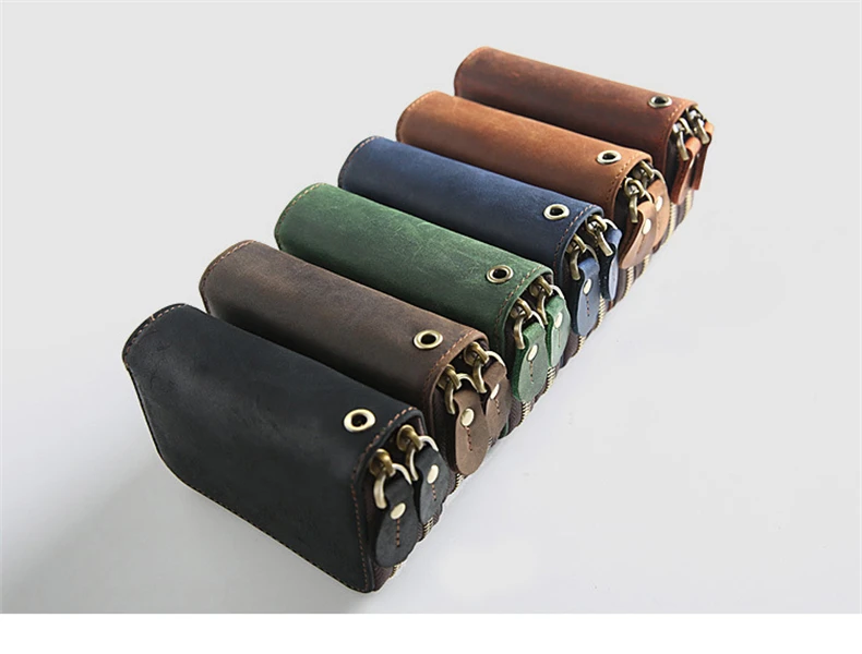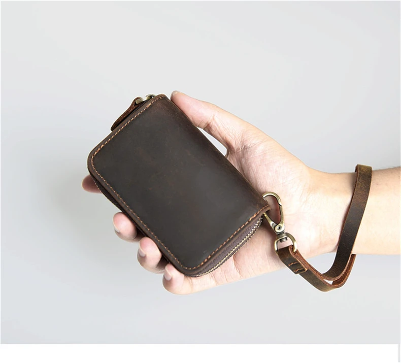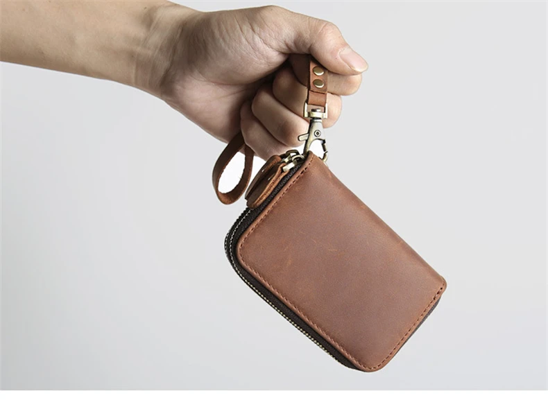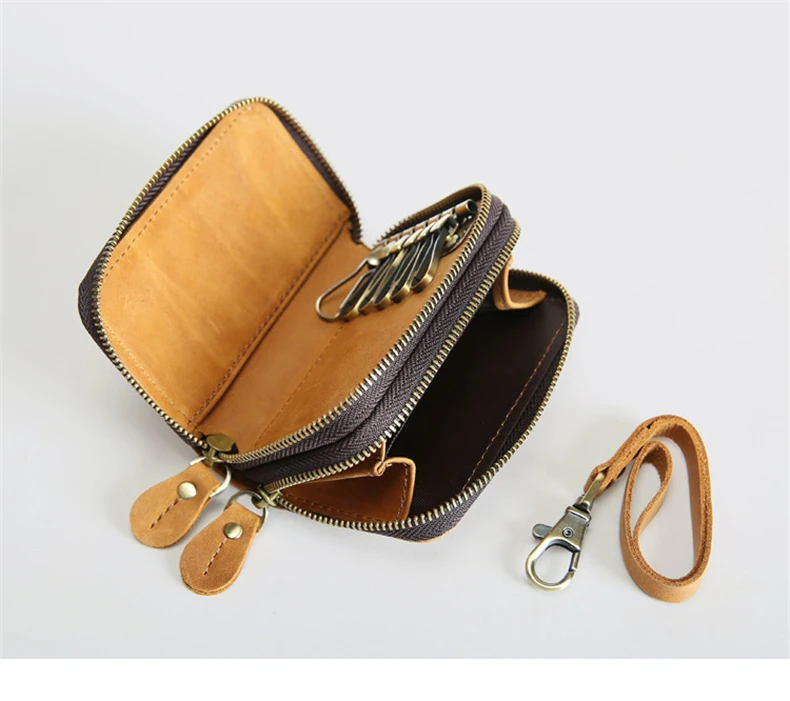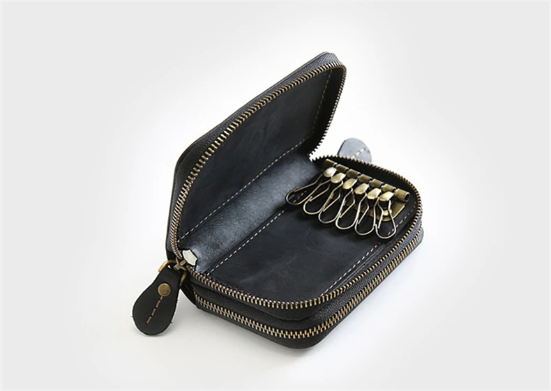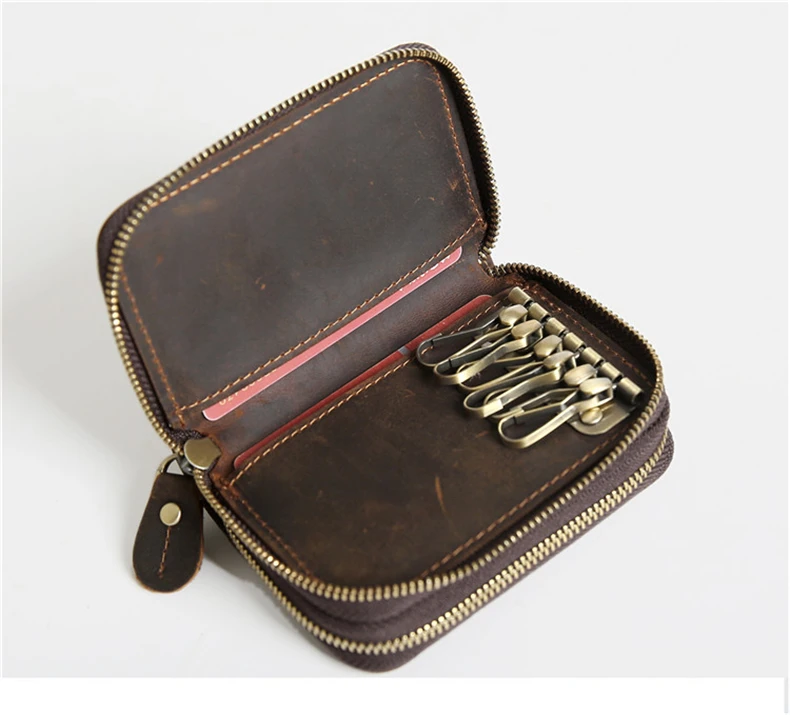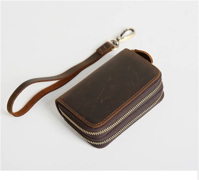 SOUTH GOOSE Genuine Leather Key Wallets Men Retro Car Key Case Cowhide Double Zipper Keys Organizer Coin Pouch Women Housekeeper
