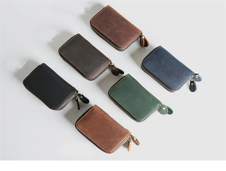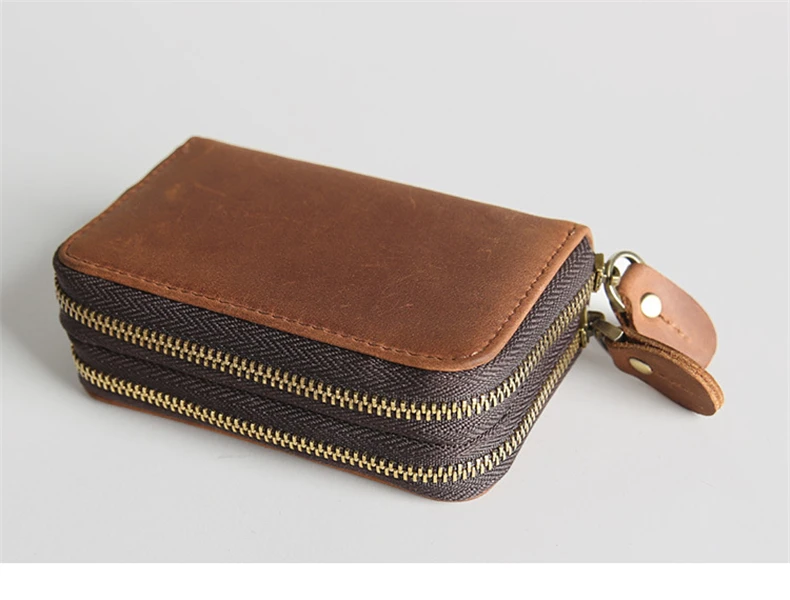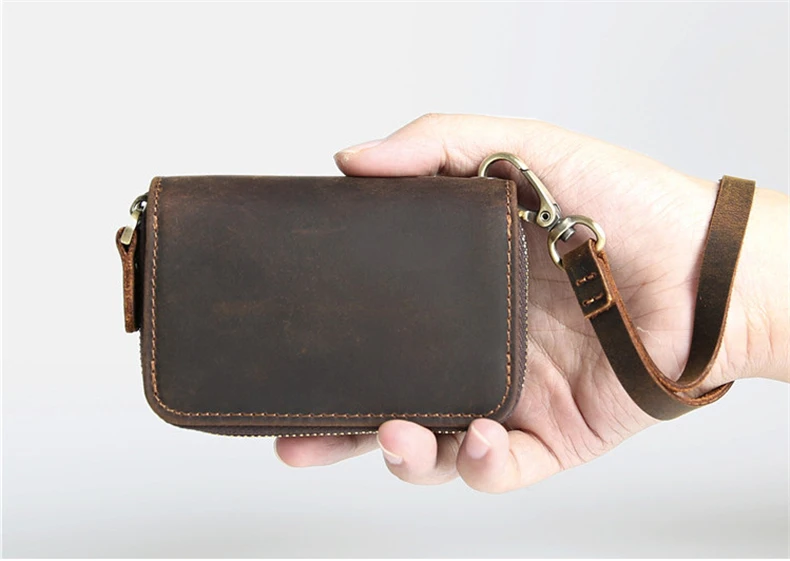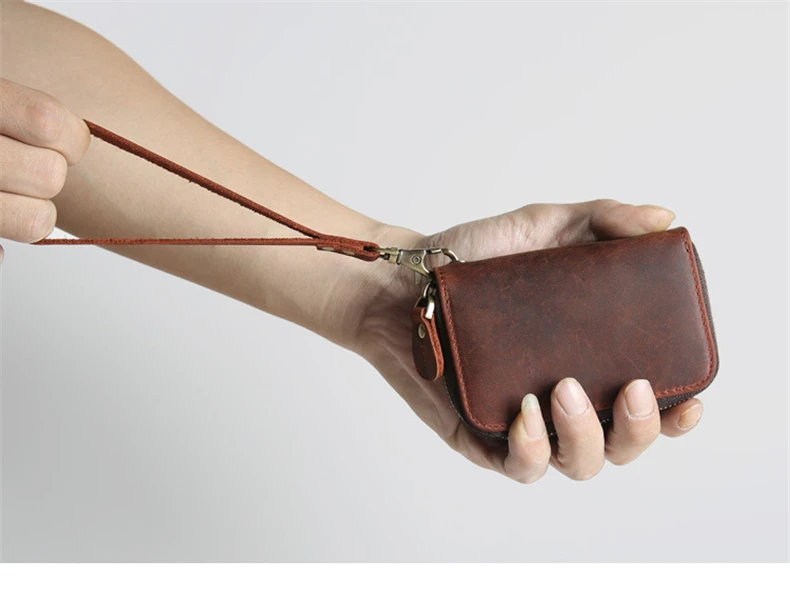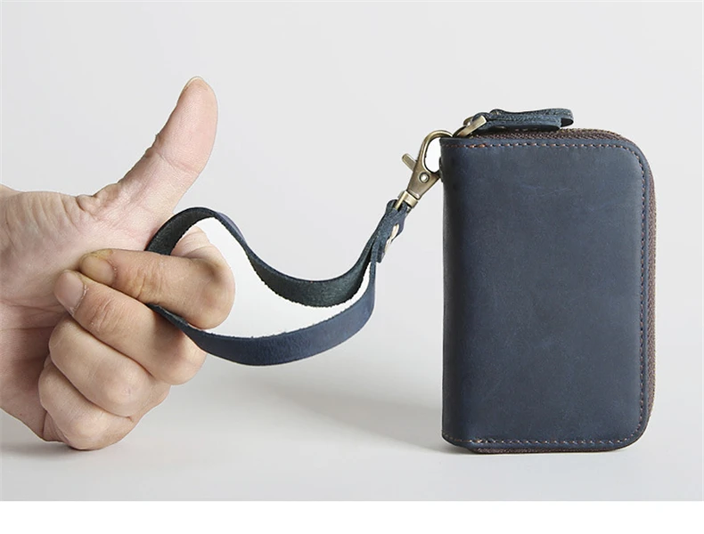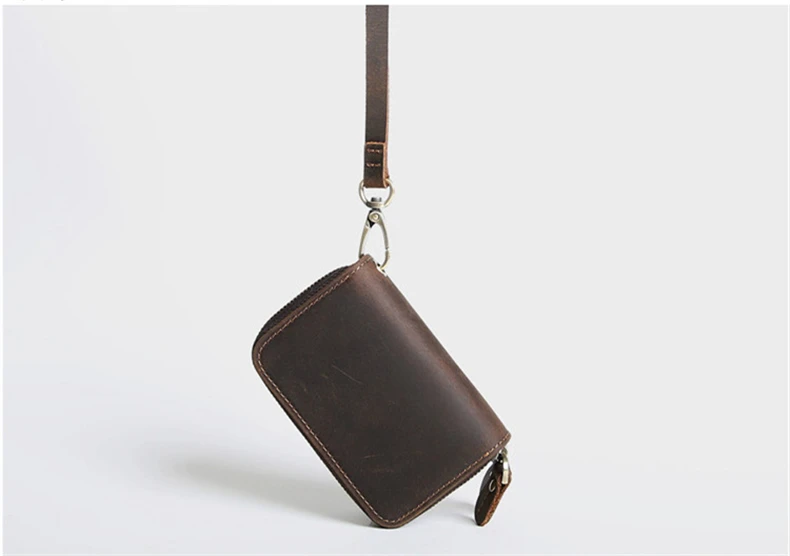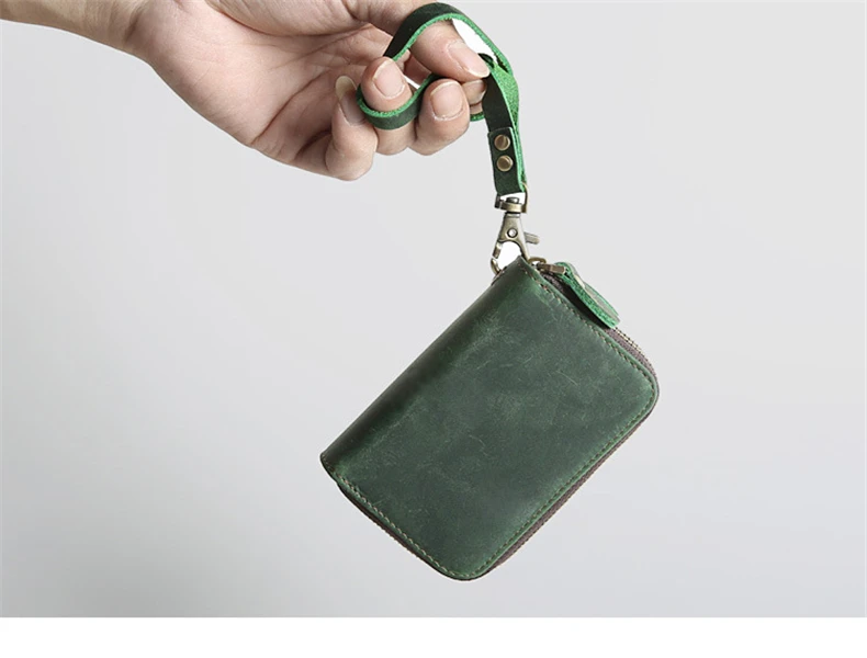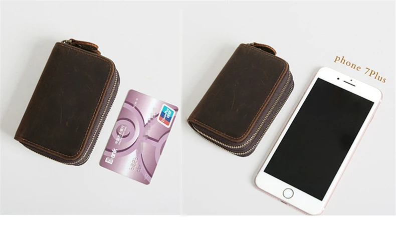 SOUTH GOOSE Genuine Leather Key Wallets Men Retro Car Key Case Cowhide Double Zipper Keys Organizer Coin Pouch Women Housekeeper