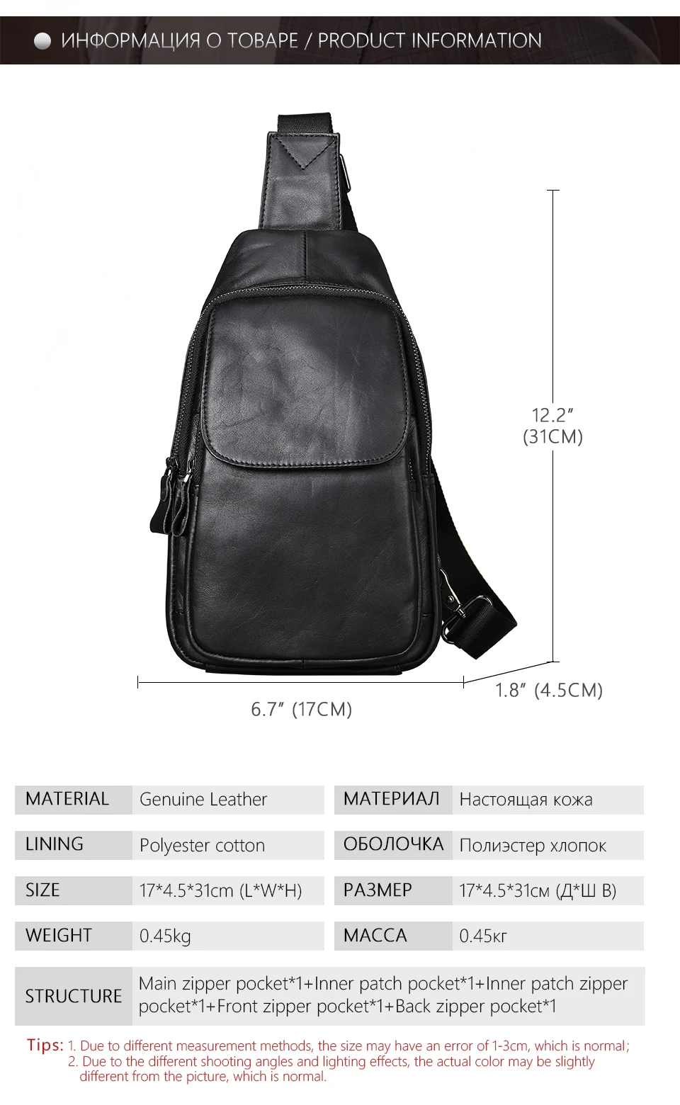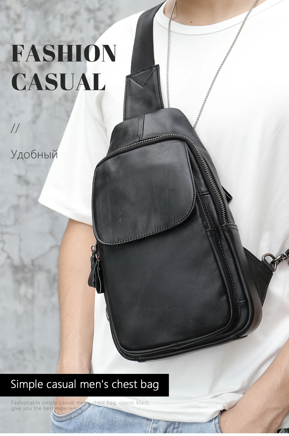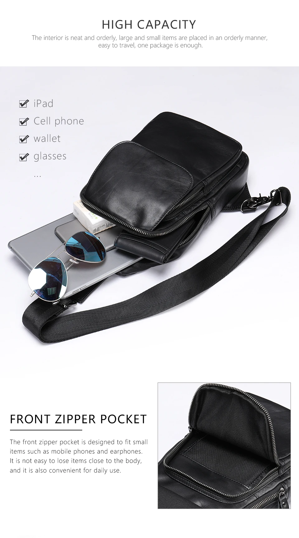 WESTAL Coffee Genuine Leather Bag for Men Chest Bags Shoulder Pack Husband Gift Wallet Crossbody Bag Fashion Luxury Designer