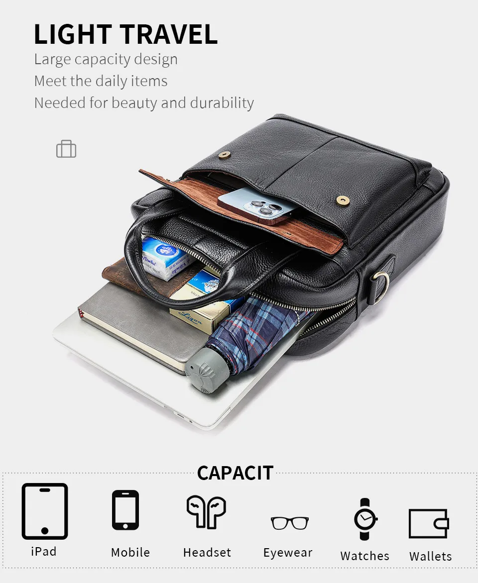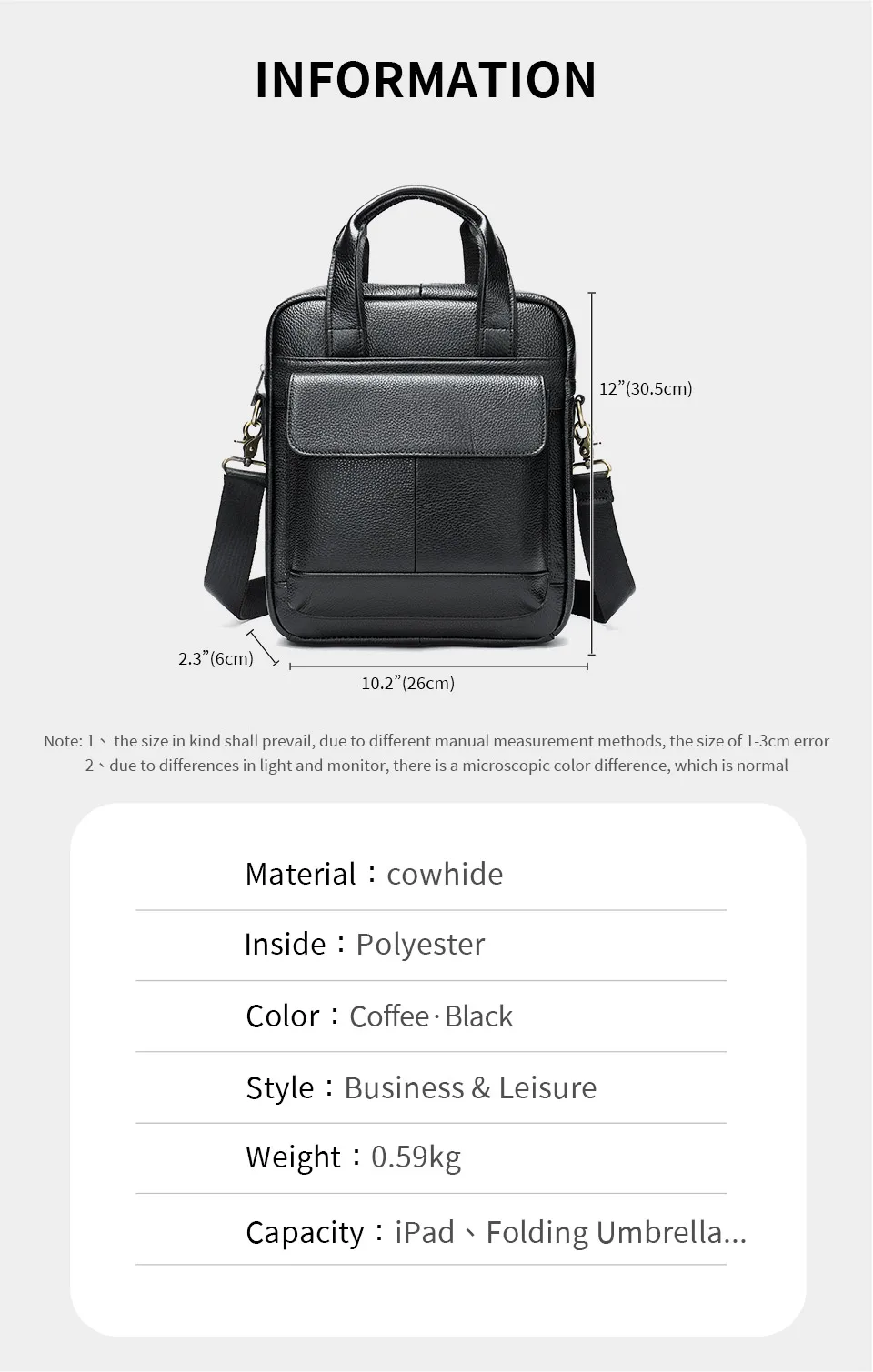 WESTAL Shoulder Bag for Men Genuine Leather Messenger Crossbody Bags Bussiness 9.7 Inch iPad Handbags Document Tote Travel